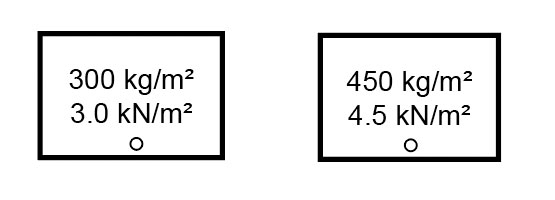 • avant 300 kg/m², arrière 450 kg/m²