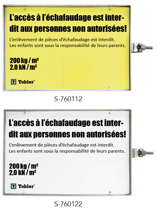Panneaux avec indication de la charge Tobler AG